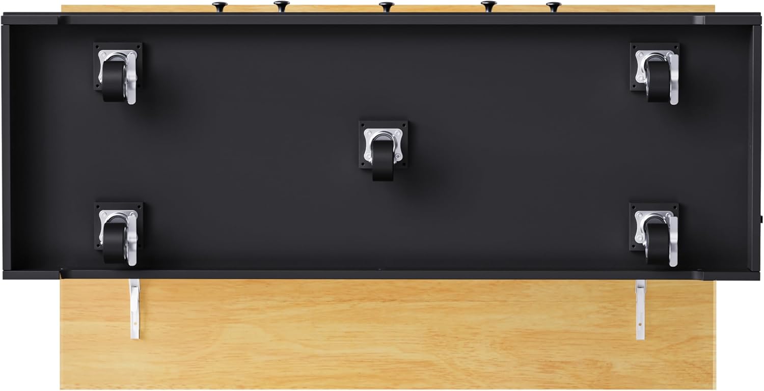 But that’s not all – this kitchen cart is also equipped with a built-in power outlet, allowing you to conveniently plug in your appliances or charge your devices while you cook. Say goodbye to cluttered countertops and tangled cords with this innovative feature.
